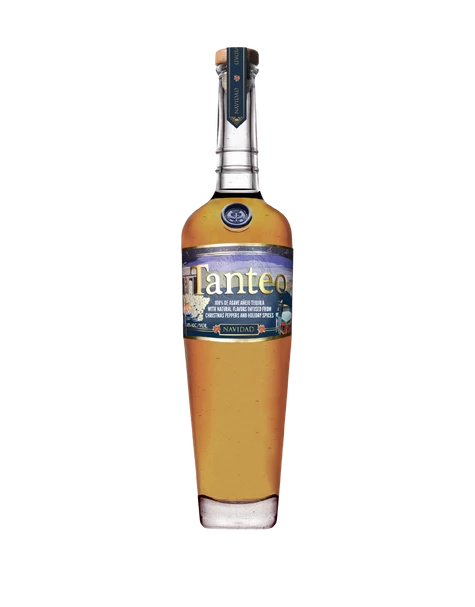 Tanteo Navidad is a 100% blue weber agave Añejo tequila infused with pequin chilis, nutmeg, clove, cinnamon, ginger and cocoa beans. Layers all the flavors of the holidays over an ultra-premium añejo tequila rested 18 months in American Oak.